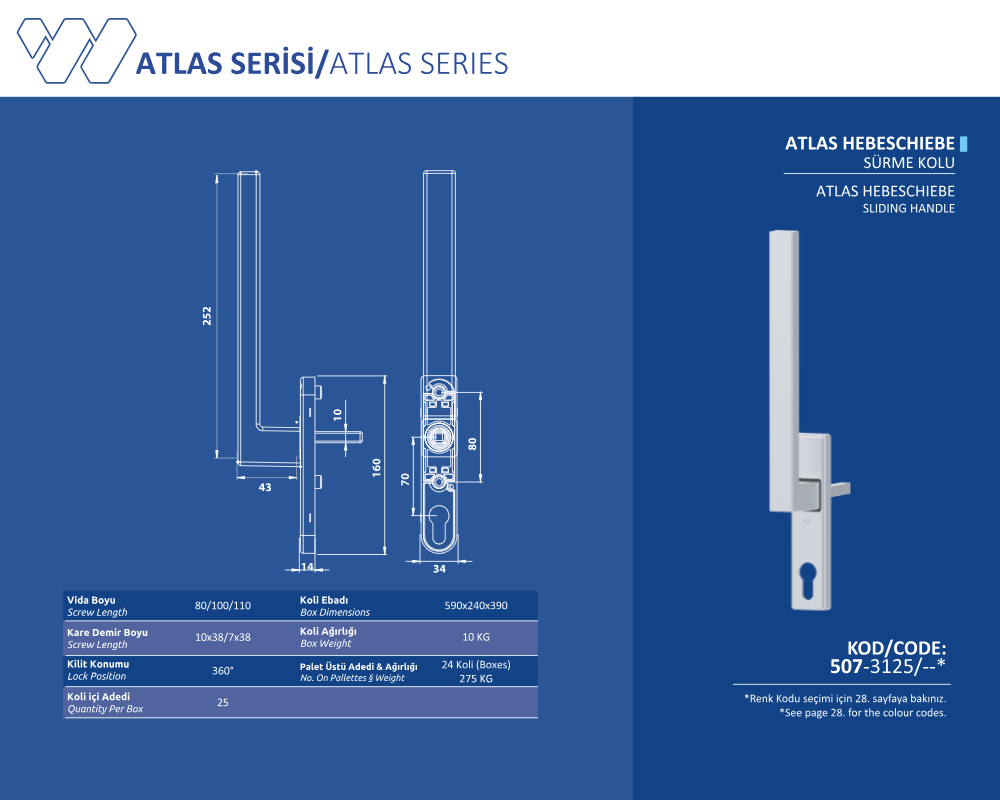 Palet Üstü Adedi & Ağırlığı (No. on Palettes & Weight) 24 Koli (Boxes) 275 KG