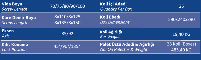 Kare Demir Boyu (Screw Length) 8x110 / 8x125 / 8x135 / 8x150