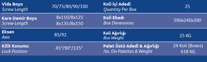 Palet Üstü Adedi & Ağırlığı (No. on Palettes & Weight) 24 Koli (Boxes) 618 KG