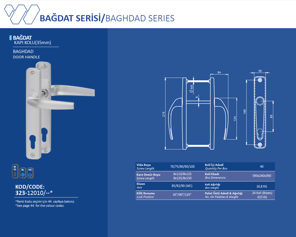 Palet Üstü Adedi & Ağırlığı (No. on Palettes & Weight) 24 Koli (Boxes) 423 KG