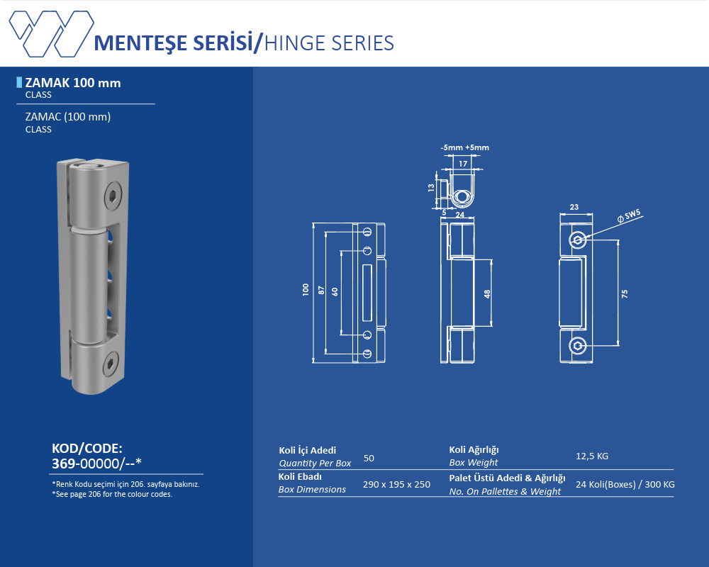 Palet Üstü Adedi & Ağırlığı (No. on Palettes & Weight) 24 Koli (Boxes) 300 KG