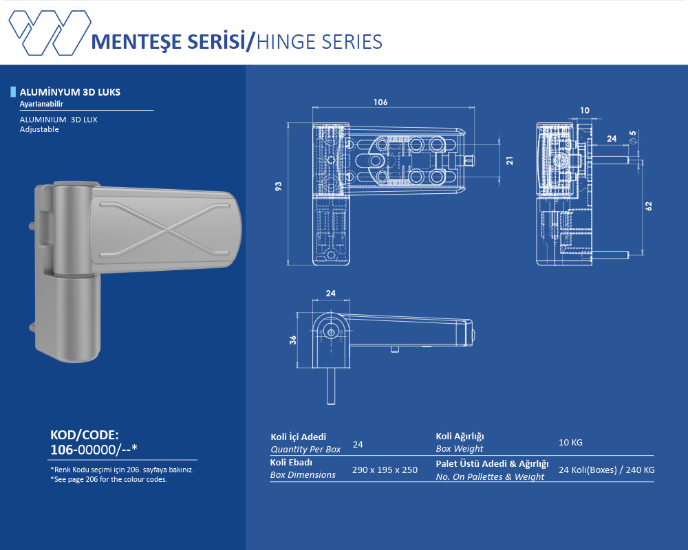Palet Üstü Adedi & Ağırlığı (No. on Palettes & Weight) 24 Koli (Boxes) 275 KG