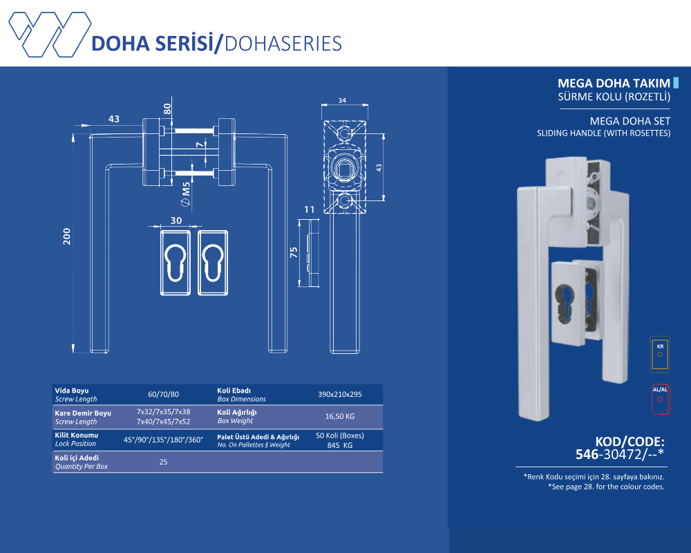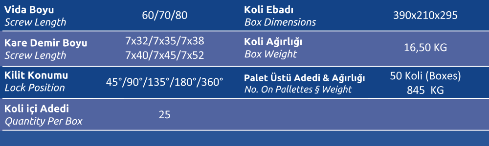 Palet Üstü Adedi & Ağırlığı (No. on Palettes & Weight) 24 Koli (Boxes) 845 KG