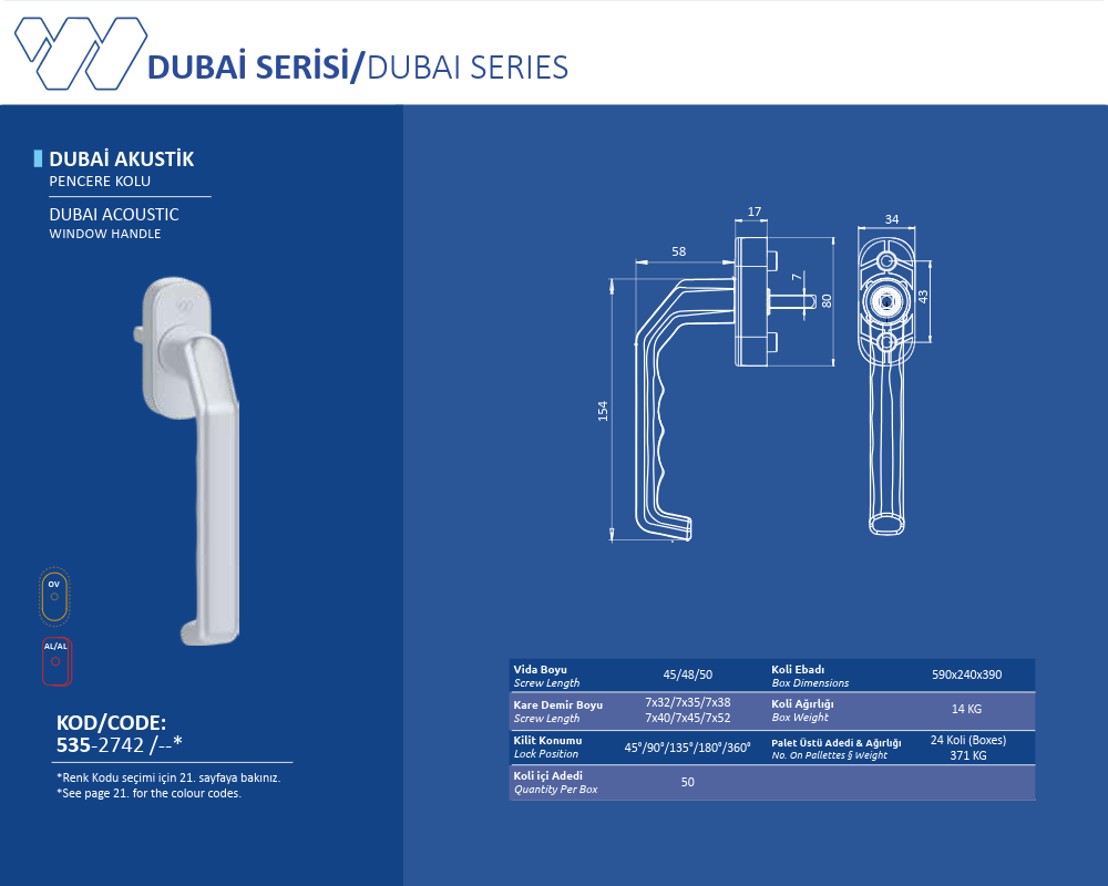 Palet Üstü Adedi & Ağırlığı (No. on Palettes & Weight) 24 Koli (Boxes) 371 KG