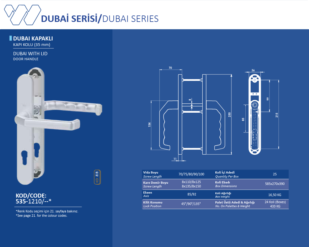 Palet Üstü Adedi & Ağırlığı (No. on Palettes & Weight) 24 Koli (Boxes) 647,6 KG