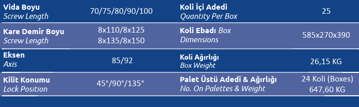 Kilit Konumu (Lock Position) 45° / 90° / 135°
