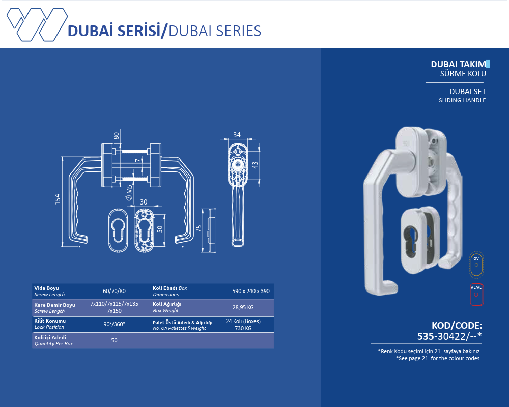 Palet Üstü Adedi & Ağırlığı (No. on Palettes & Weight) 24 Koli (Boxes) 730 KG