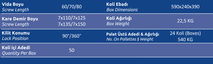 Kare Demir Boyu (Screw Length) 7x110 / 7x125/7x135/7x150