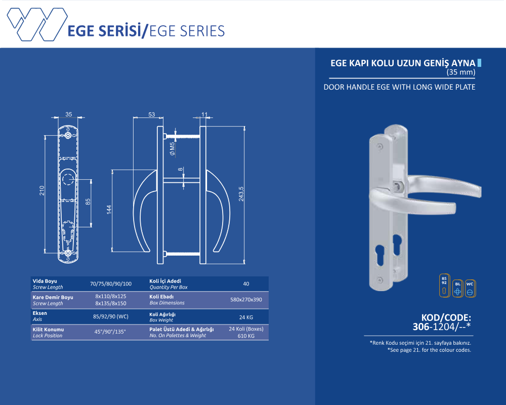 Palet Üstü Adedi & Ağırlığı (No. on Palettes & Weight) 24 Koli (Boxes) 610 KG