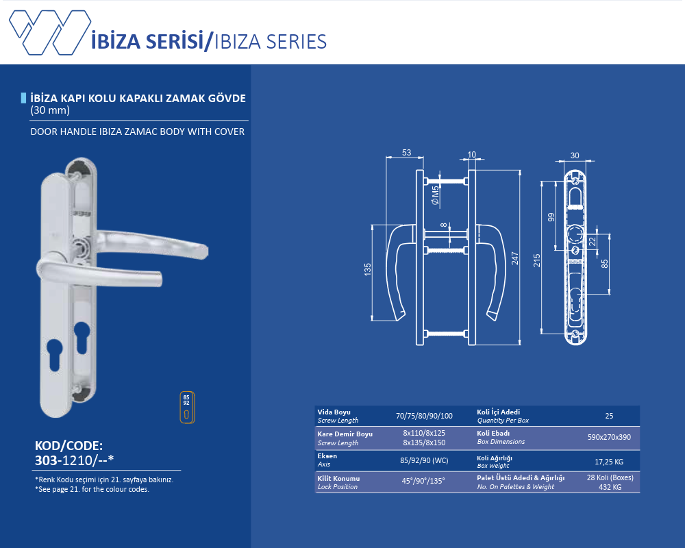 Palet Üstü Adedi & Ağırlığı (No. on Palettes & Weight) 24 Koli (Boxes) 432 KG