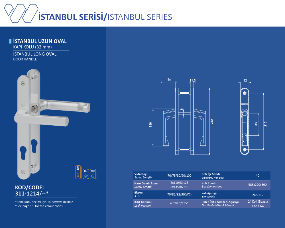 Palet Üstü Adedi & Ağırlığı (No. on Palettes & Weight) 24 Koli (Boxes) 632,6 KG
