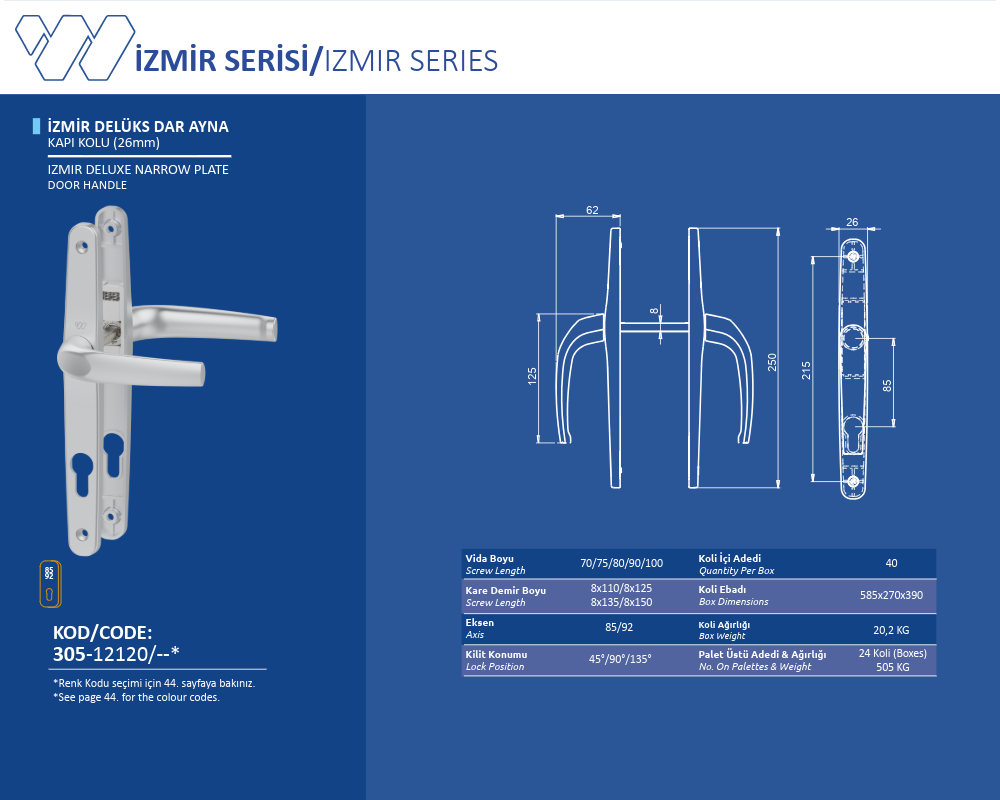Palet Üstü Adedi & Ağırlığı (No. on Palettes & Weight) 24 Koli (Boxes) 505 KG