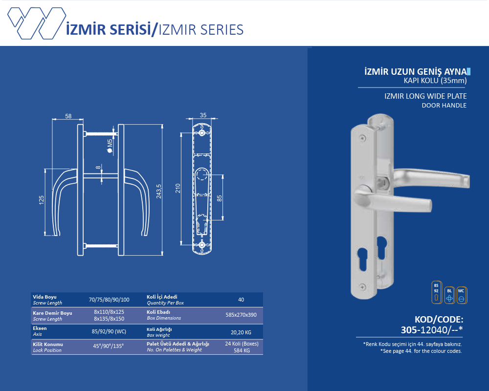 Palet Üstü Adedi & Ağırlığı (No. on Palettes & Weight) 24 Koli (Boxes) 584 KG