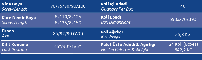 Kilit Konumu (Lock Position) 45° / 90° / 135°