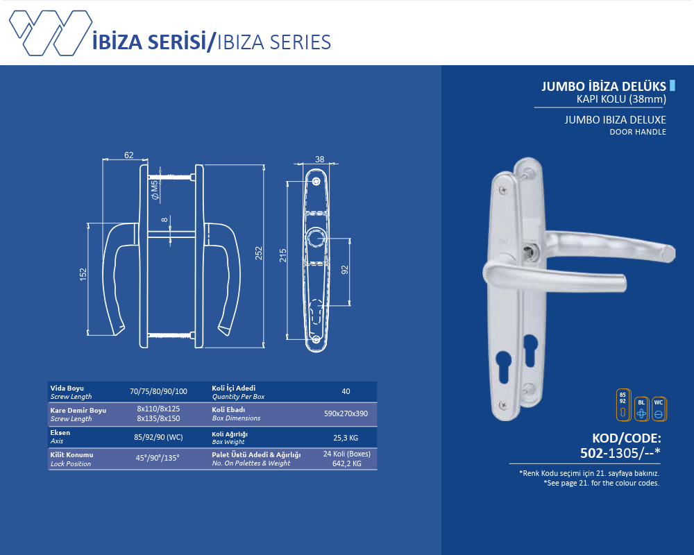 Palet Üstü Adedi & Ağırlığı (No. on Palettes & Weight) 24 Koli (Boxes) 642,2 KG
