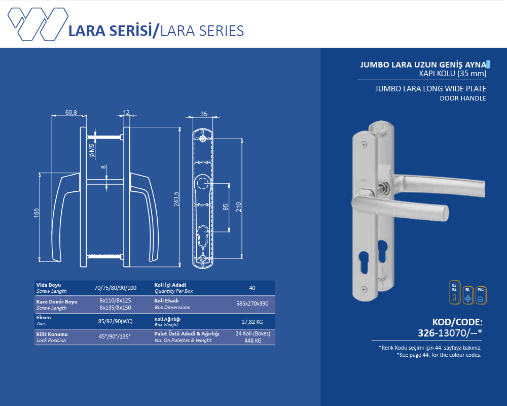 Palet Üstü Adedi & Ağırlığı (No. on Palettes & Weight) 24 Koli (Boxes) 448 KG