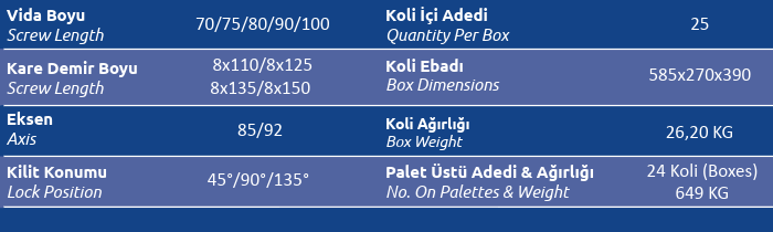 Kare Demir Boyu (Screw Length) 8x110 / 8x125 / 8x135 / 8x150