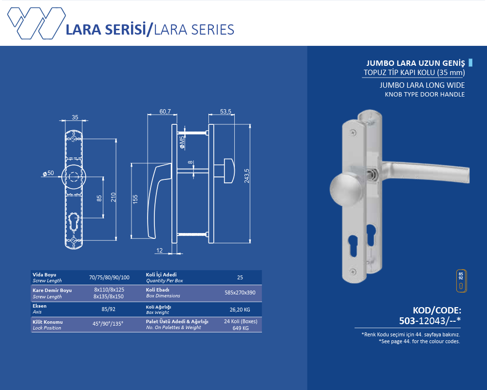 Palet Üstü Adedi & Ağırlığı (No. on Palettes & Weight) 24 Koli (Boxes) 649 KG