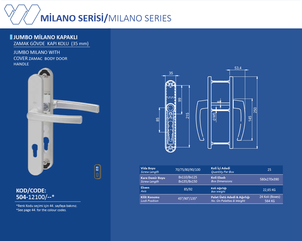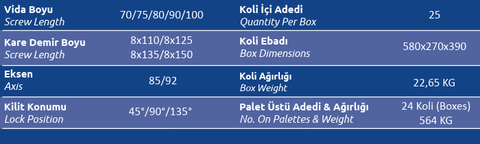 Palet Üstü Adedi & Ağırlığı (No. on Palettes & Weight) 24 Koli (Boxes) 564 KG