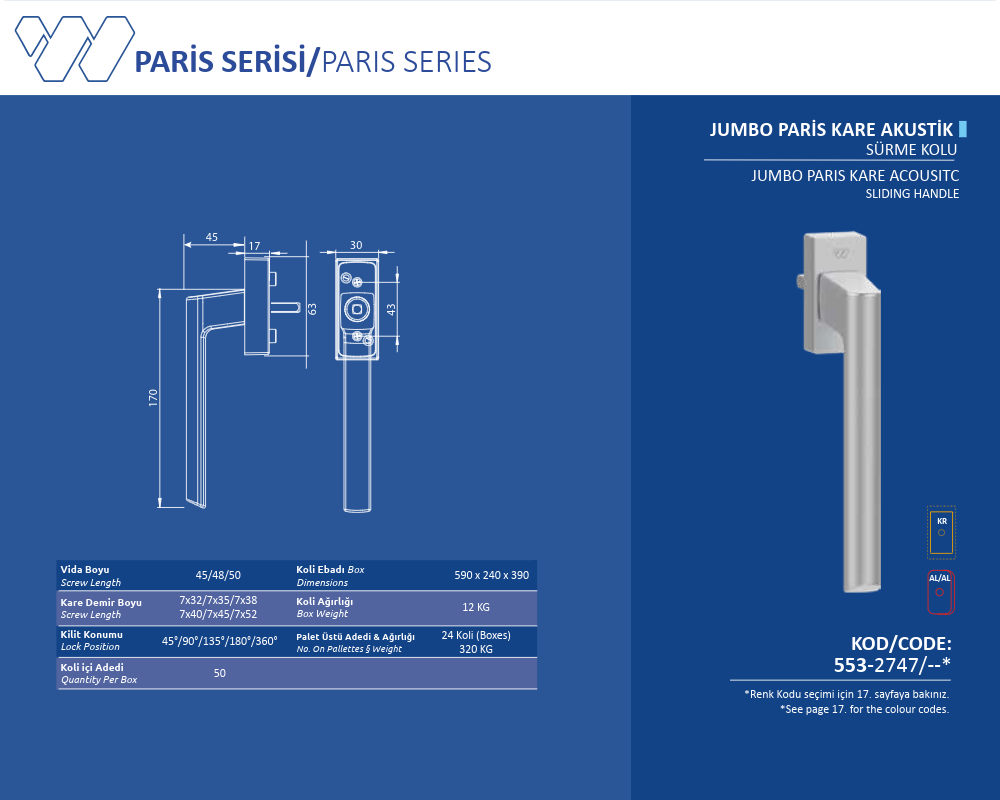 Palet Üstü Adedi & Ağırlığı (No. on Palettes & Weight) 24 Koli (Boxes) 320 KG