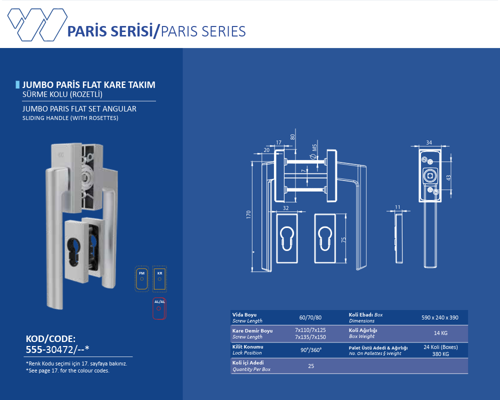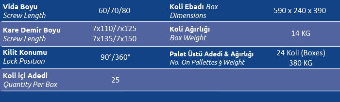 Palet Üstü Adedi & Ağırlığı (No. on Palettes & Weight) 24 Koli (Boxes) 380 KG