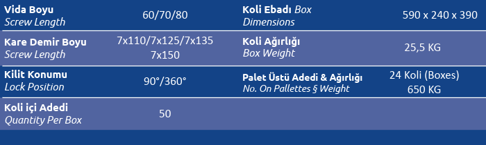 Kare Demir Boyu (Screw Length) 7x110 / 7x125/7x135/7x150
