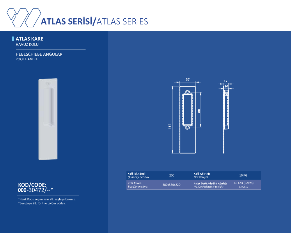 Palet Üstü Adedi & Ağırlığı (No. on Palettes & Weight) 60 Koli (Boxes) 635 KG