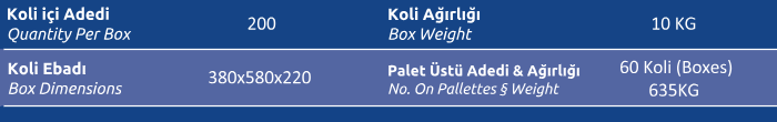 Koli İçi Adedi (Quantity Per Box) 200