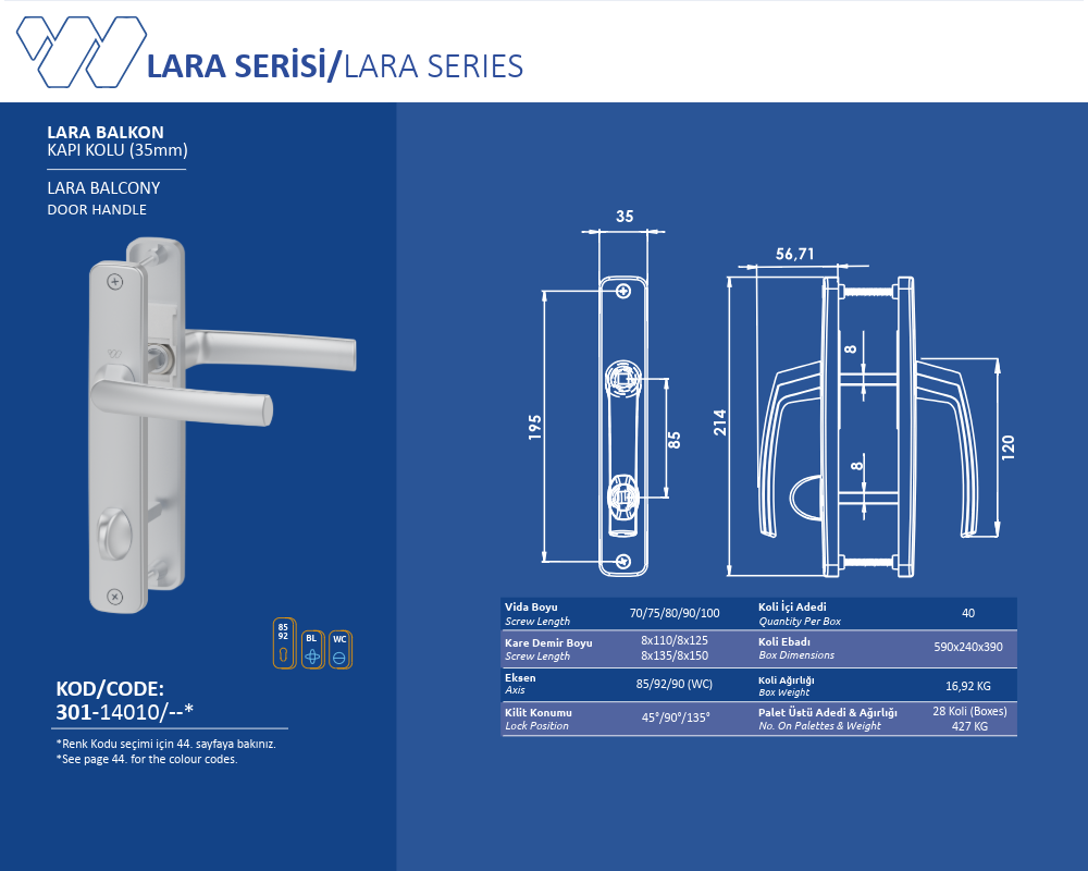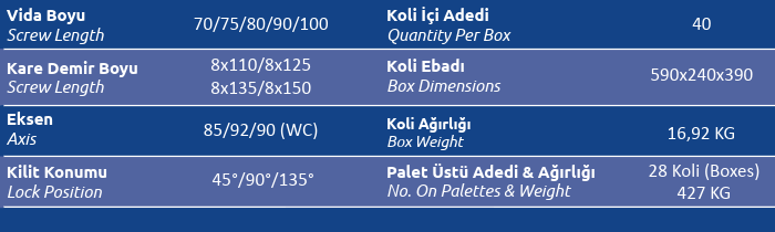 Palet Üstü Adedi & Ağırlığı (No. on Palettes & Weight) 24 Koli (Boxes) 427 KG