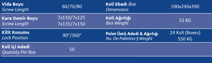 Kare Demir Boyu (Screw Length) 7x110 / 7x125/7x135/7x150