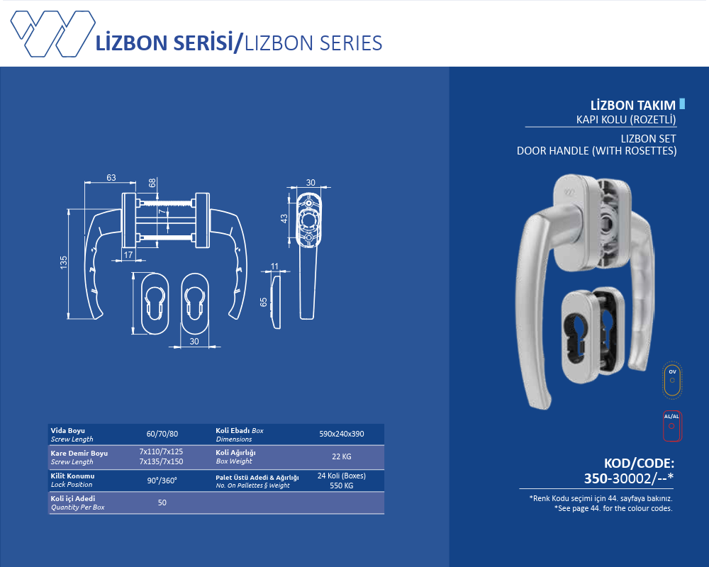 Palet Üstü Adedi & Ağırlığı (No. on Palettes & Weight) 24 Koli (Boxes) 550 KG