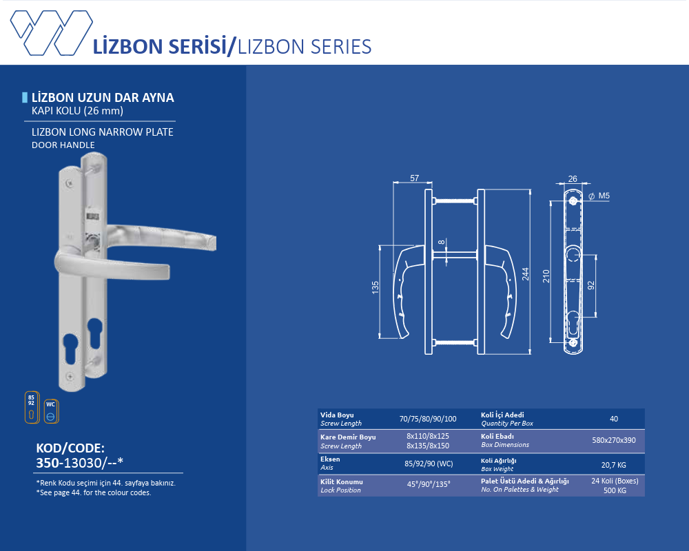 Palet Üstü Adedi & Ağırlığı (No. on Palettes & Weight) 24 Koli (Boxes) 500 KG