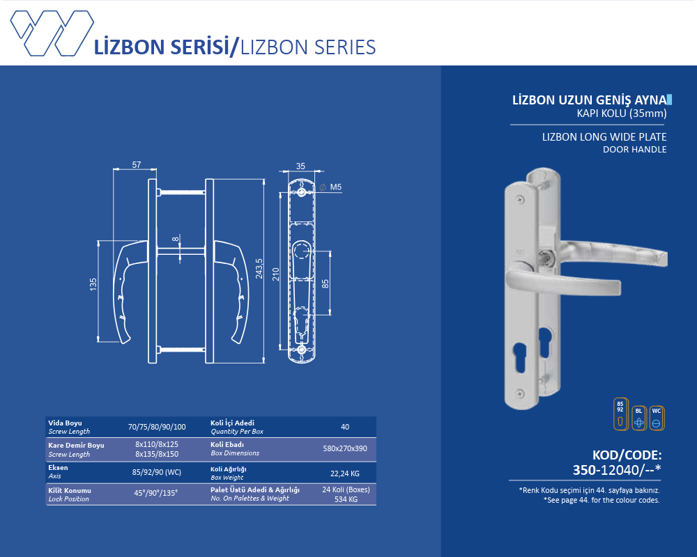 Palet Üstü Adedi & Ağırlığı (No. on Palettes & Weight) 24 Koli (Boxes) 534 KG
