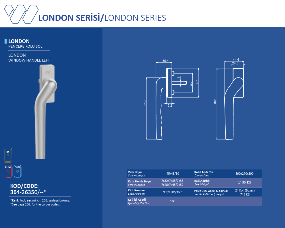Palet Üstü Adedi & Ağırlığı (No. on Palettes & Weight) 24 Koli (Boxes) 745 KG