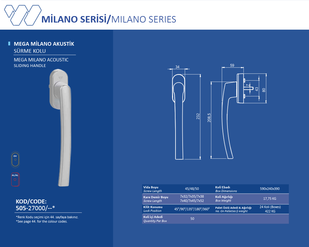 Palet Üstü Adedi & Ağırlığı (No. on Palettes & Weight) 24 Koli (Boxes) 422 KG