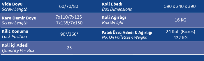 Kare Demir Boyu (Screw Length) 7x110 / 7x125/7x135/7x150
