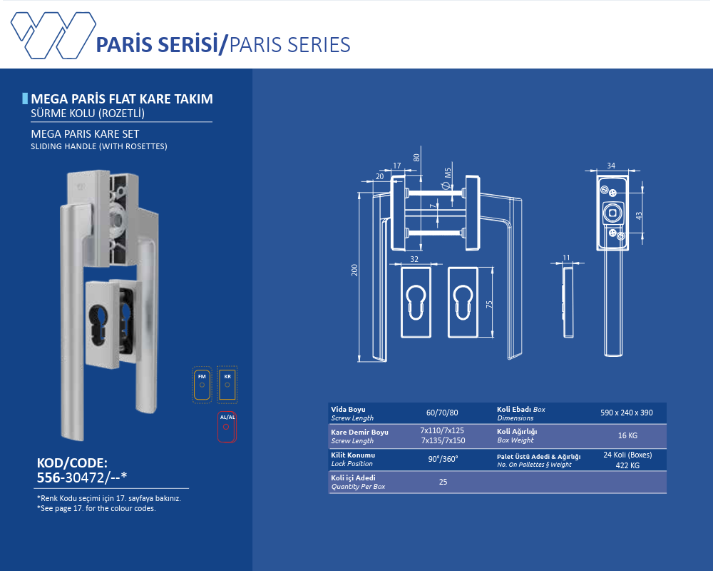 Palet Üstü Adedi & Ağırlığı (No. on Palettes & Weight) 24 Koli (Boxes) 422 KG