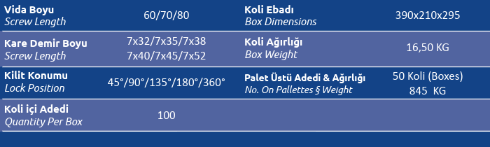 Kare Demir Boyu (Screw Length) 7x32 / 7x35 / 7x38 / 7x40 / 7x45 / 7x52
