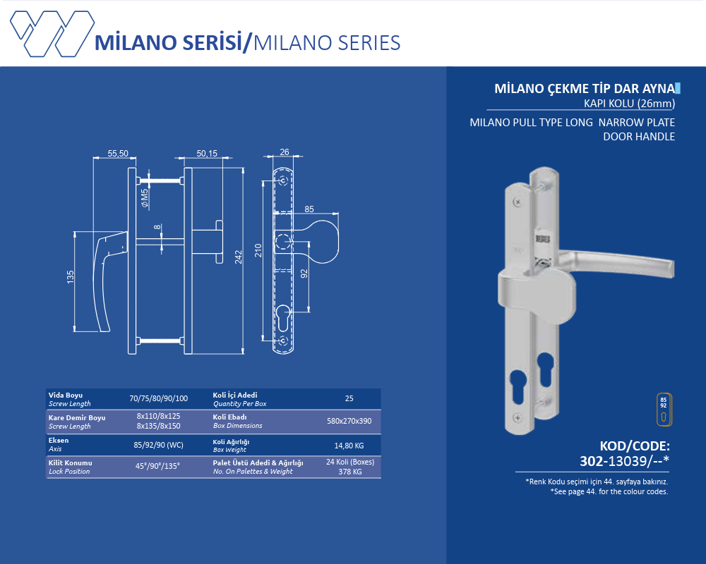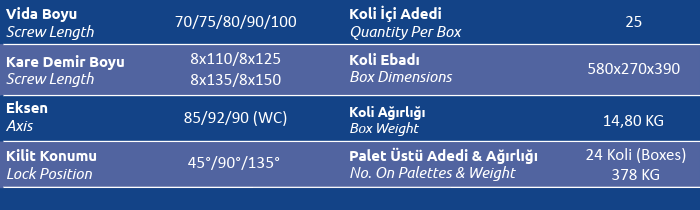 Palet Üstü Adedi & Ağırlığı (No. on Palettes & Weight) 24 Koli (Boxes) 378 KG