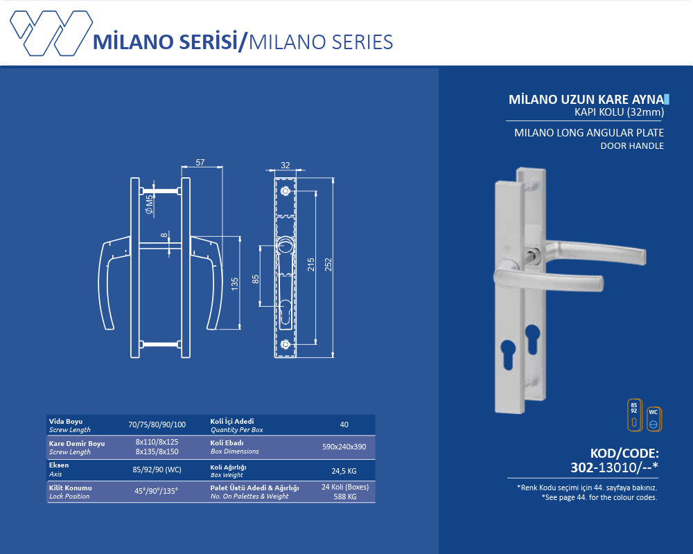 Palet Üstü Adedi & Ağırlığı (No. on Palettes & Weight) 24 Koli (Boxes) 588 KG