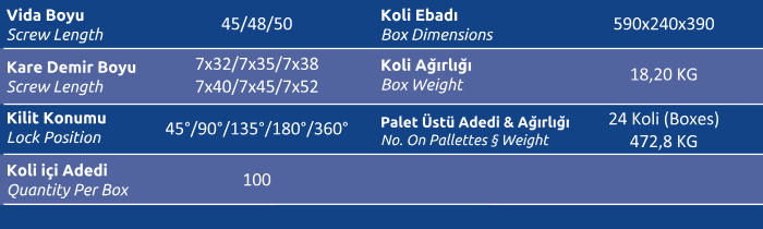 Kilit Konumu (Lock Position) 45° / 90° / 135° / 180°/ 360°
