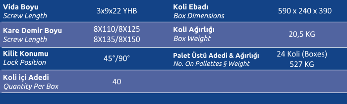 Palet Üstü Adedi & Ağırlığı (No. on Palettes & Weight) 24 Koli (Boxes) 527 KG