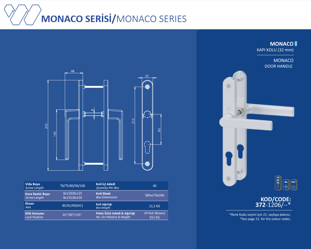 Palet Üstü Adedi & Ağırlığı (No. on Palettes & Weight) 24 Koli (Boxes) 551 KG