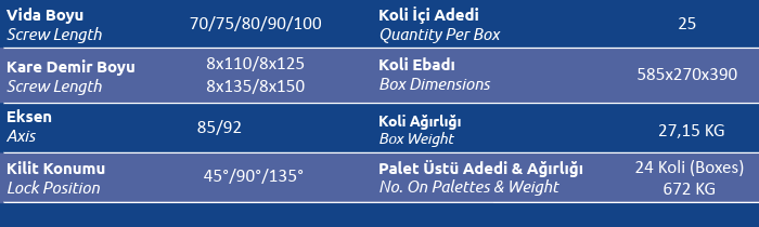 Kilit Konumu (Lock Position) 45° / 90° / 135°