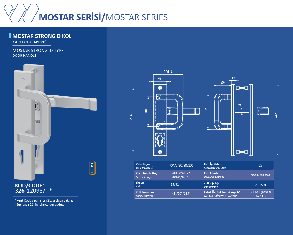Palet Üstü Adedi & Ağırlığı (No. on Palettes & Weight) 24 Koli (Boxes) 672 KG