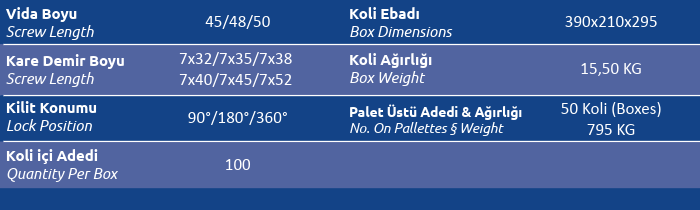 Kare Demir Boyu (Screw Length) 7x32 / 7x35 / 7x38 / 7x40 / 7x45 / 7x52
