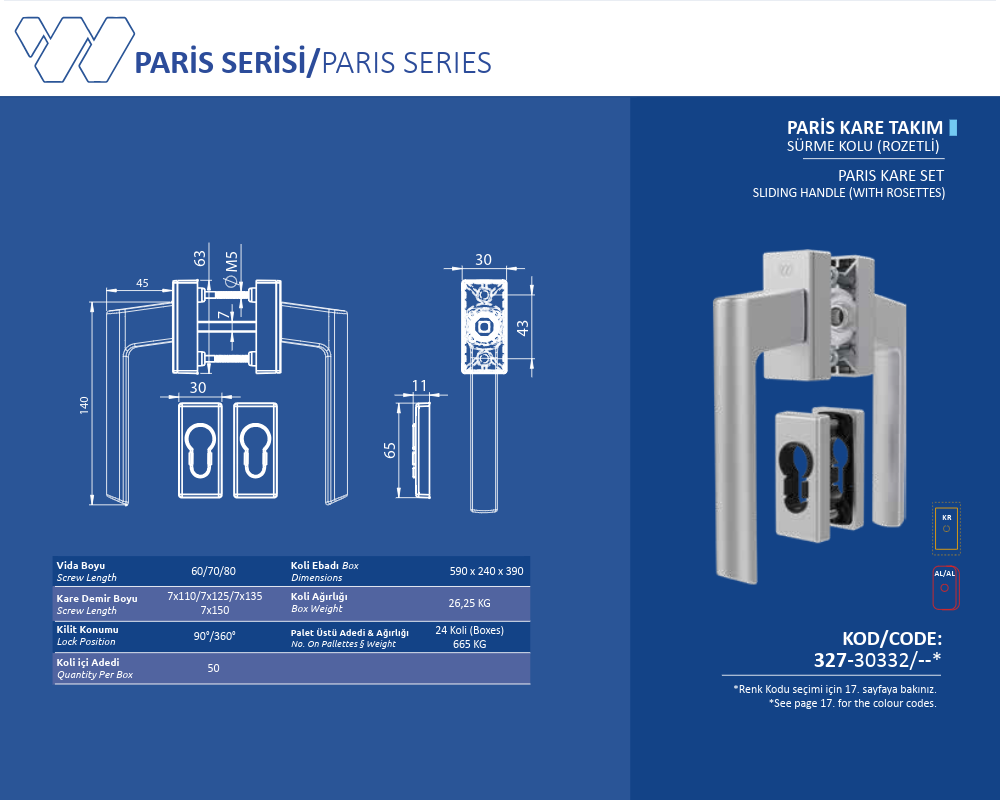 Palet Üstü Adedi & Ağırlığı (No. on Palettes & Weight) 24 Koli (Boxes) 665 KG