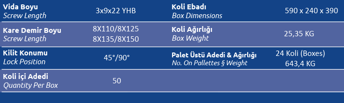 Kare Demir Boyu (Screw Length) 8x110 / 8x125/8x135/8x150