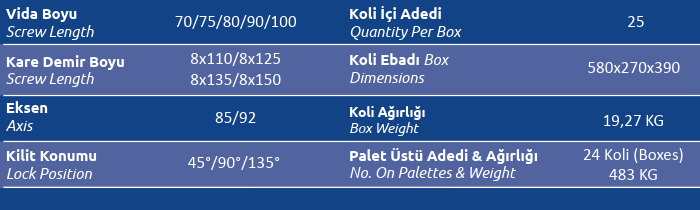 Kilit Konumu (Lock Position) 45° / 90° / 135°
