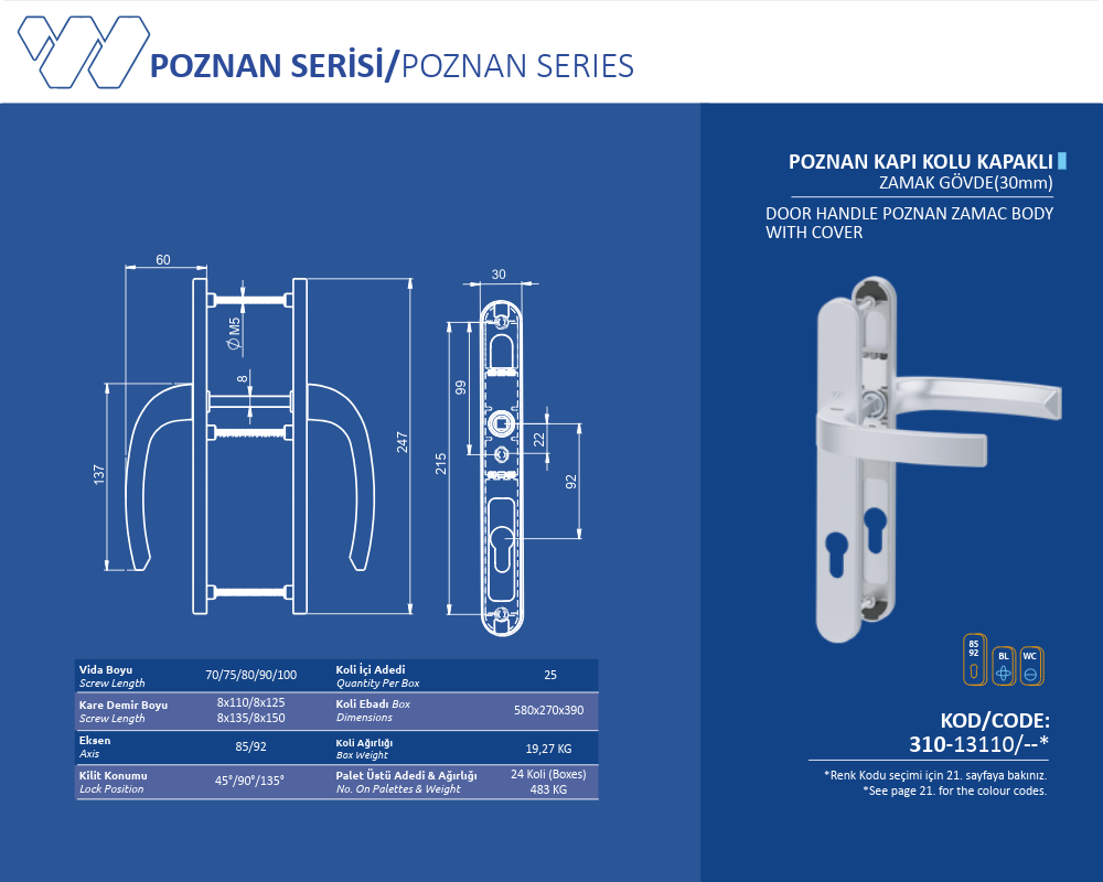 Palet Üstü Adedi & Ağırlığı (No. on Palettes & Weight) 24 Koli (Boxes) 483 KG